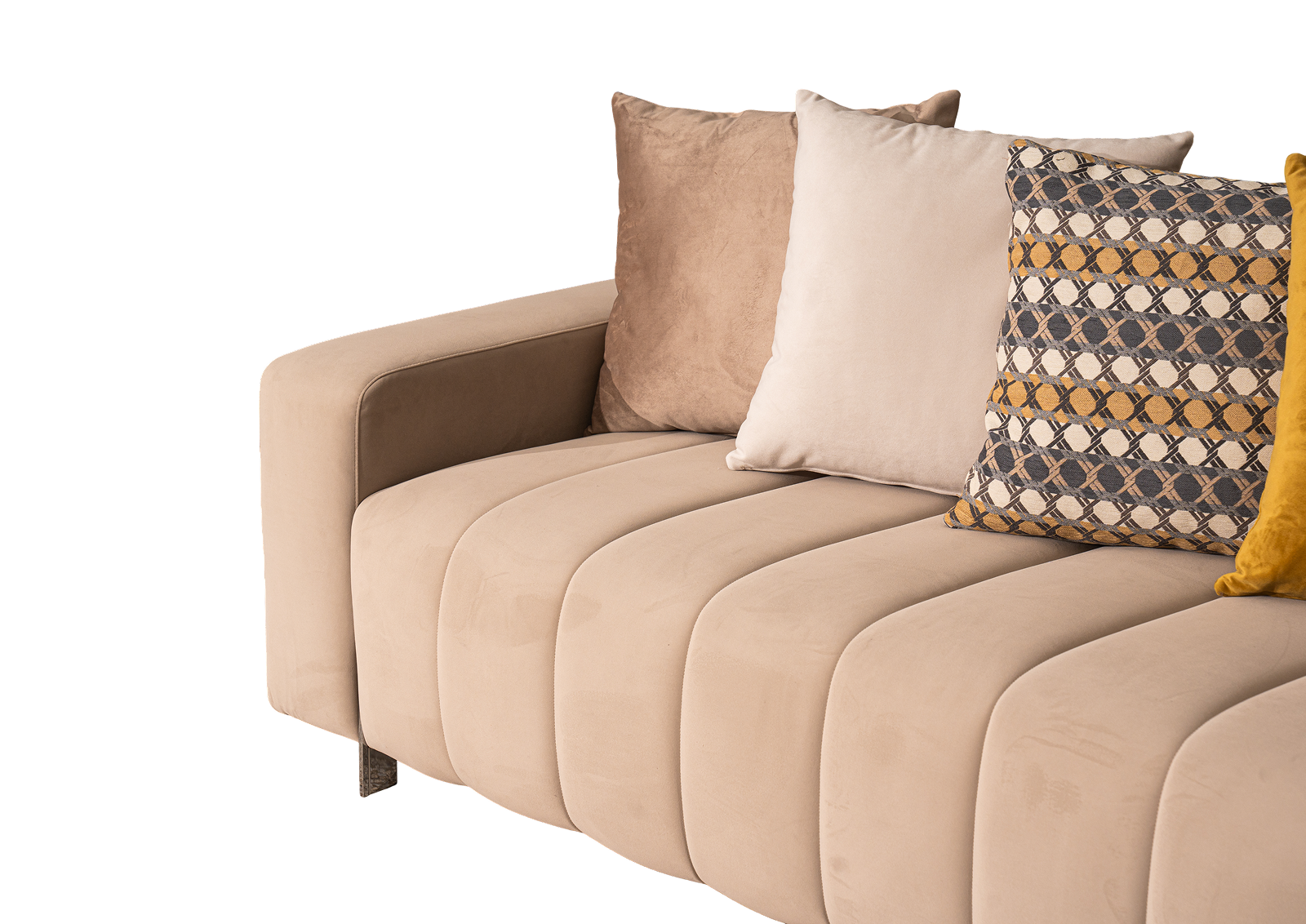 Pensé pour compléter un intérieur contemporain, ce modèle combine des lignes épurées à une présence chaleureuse. Les coussins décoratifs, proposés dans différentes textures et nuances, créent un jeu visuel subtil et apportent une touche de personnalité à l’ensemble.