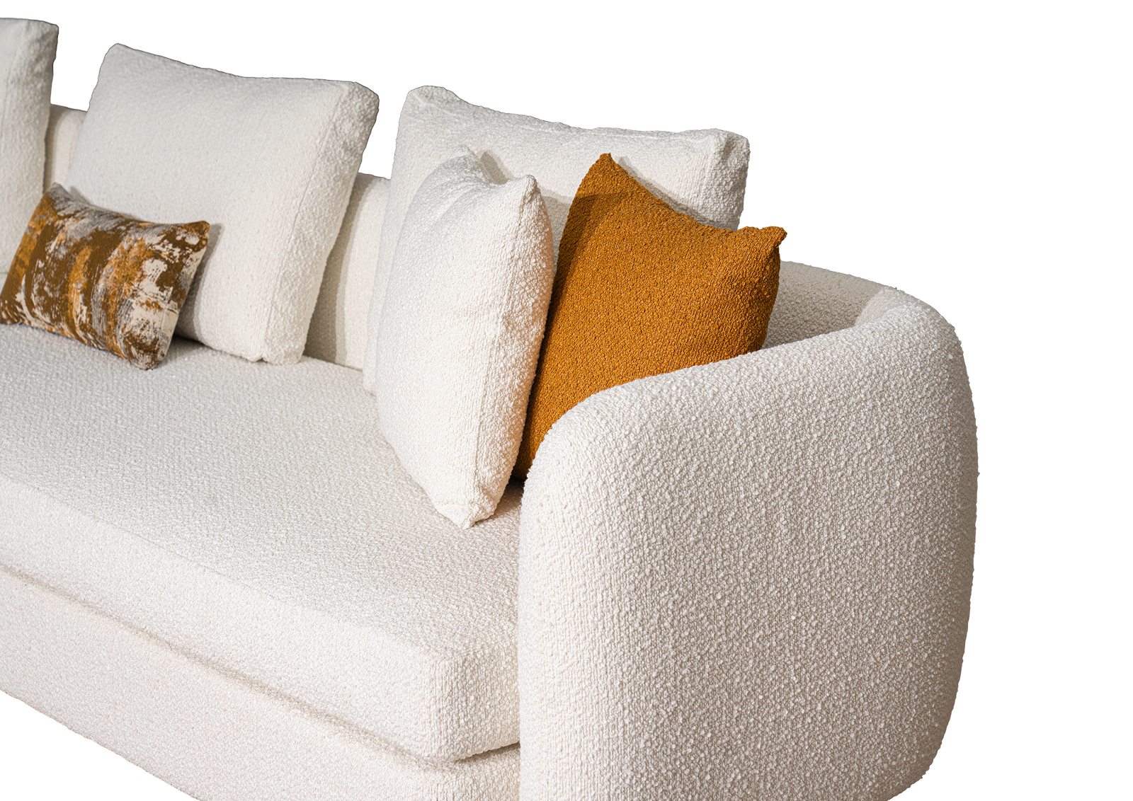 Grâce à son assise généreuse et à ses lignes épurées, ce salon offre un confort enveloppant. Les coussins décoratifs viennent enrichir l’ensemble, créant un équilibre entre minimalisme moderne et atmosphère chaleureuse.