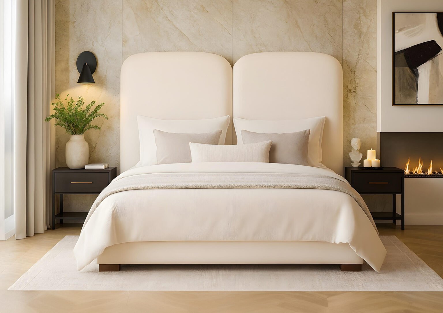 Le Lit Bella combine élégance, confort et robustesse pour un espace nuit à la fois raffiné et apaisant.