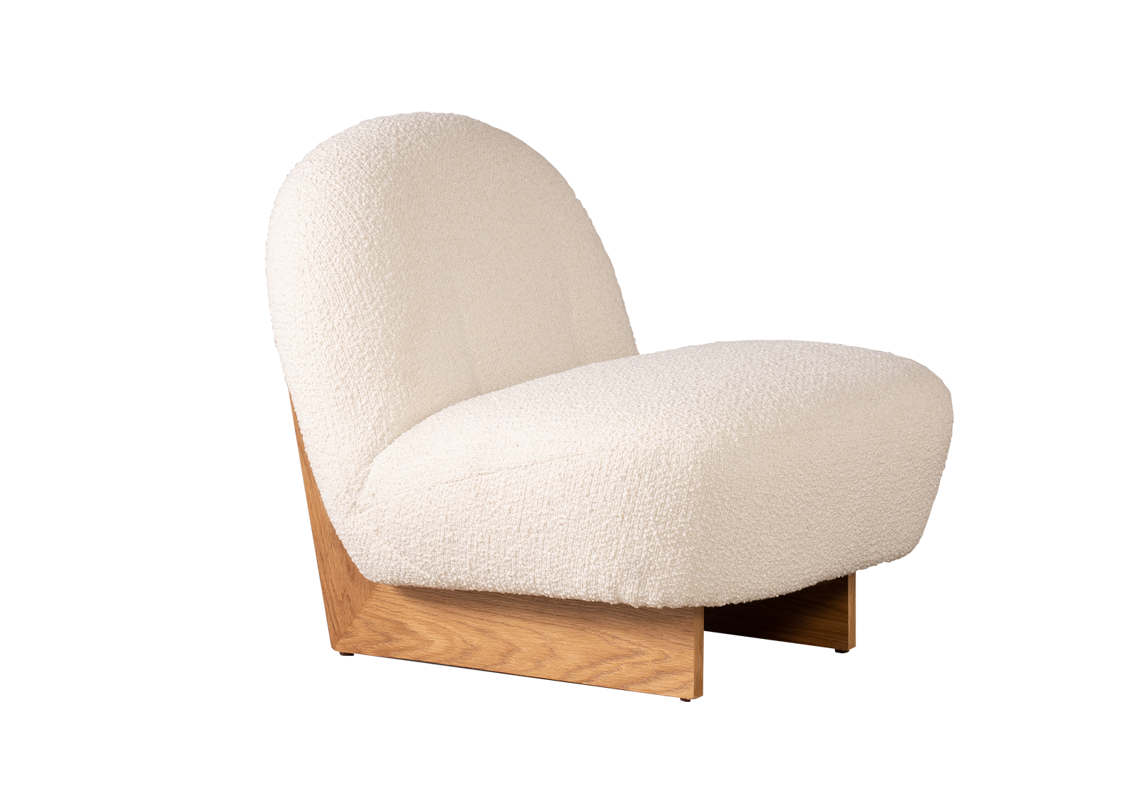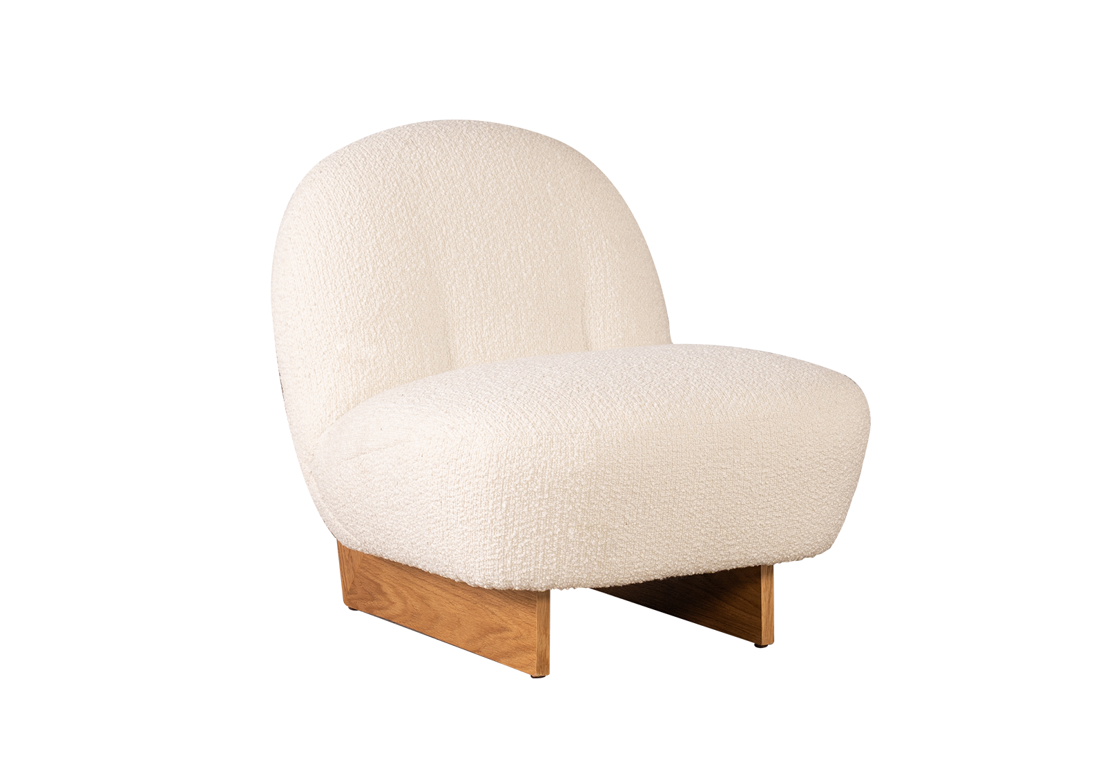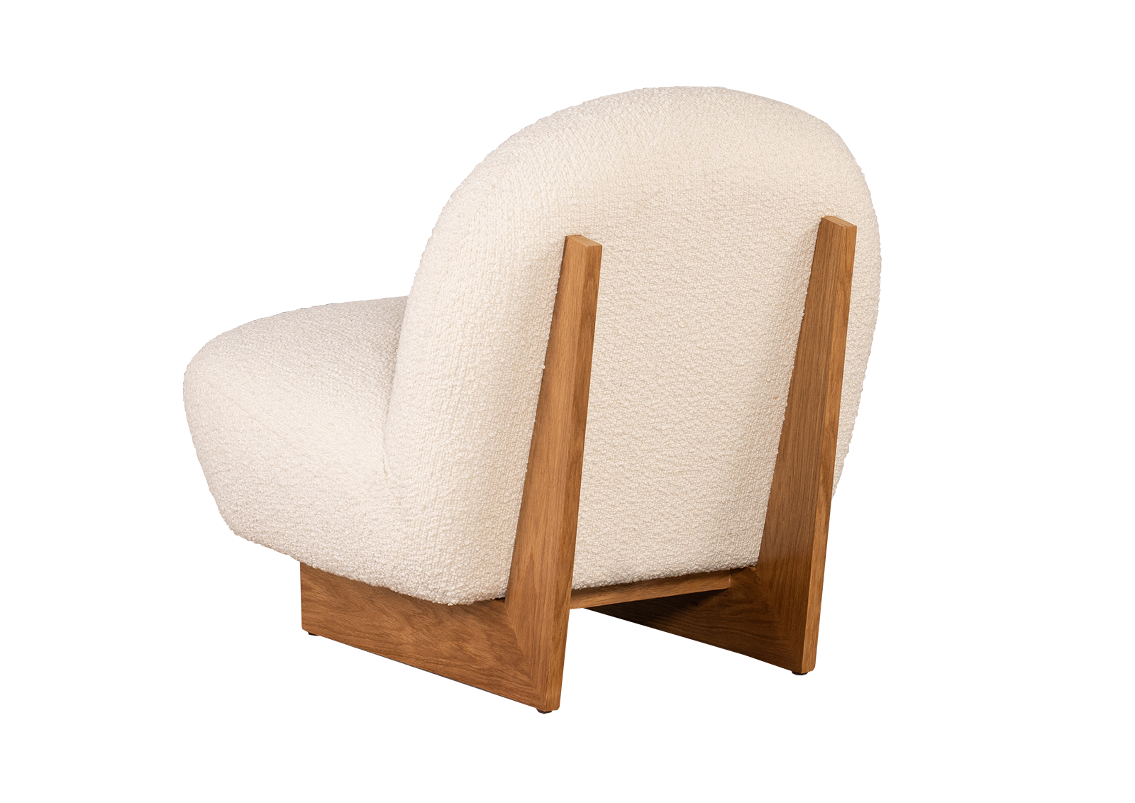 Son revêtement en bouclette luxueuse procure une sensation douce et moelleuse, tout en ajoutant une touche de sophistication et de chaleur à votre intérieur. Le socle robuste, disponible en bois massif ou en métal, assure une stabilité parfaite et complète harmonieusement le style du fauteuil.