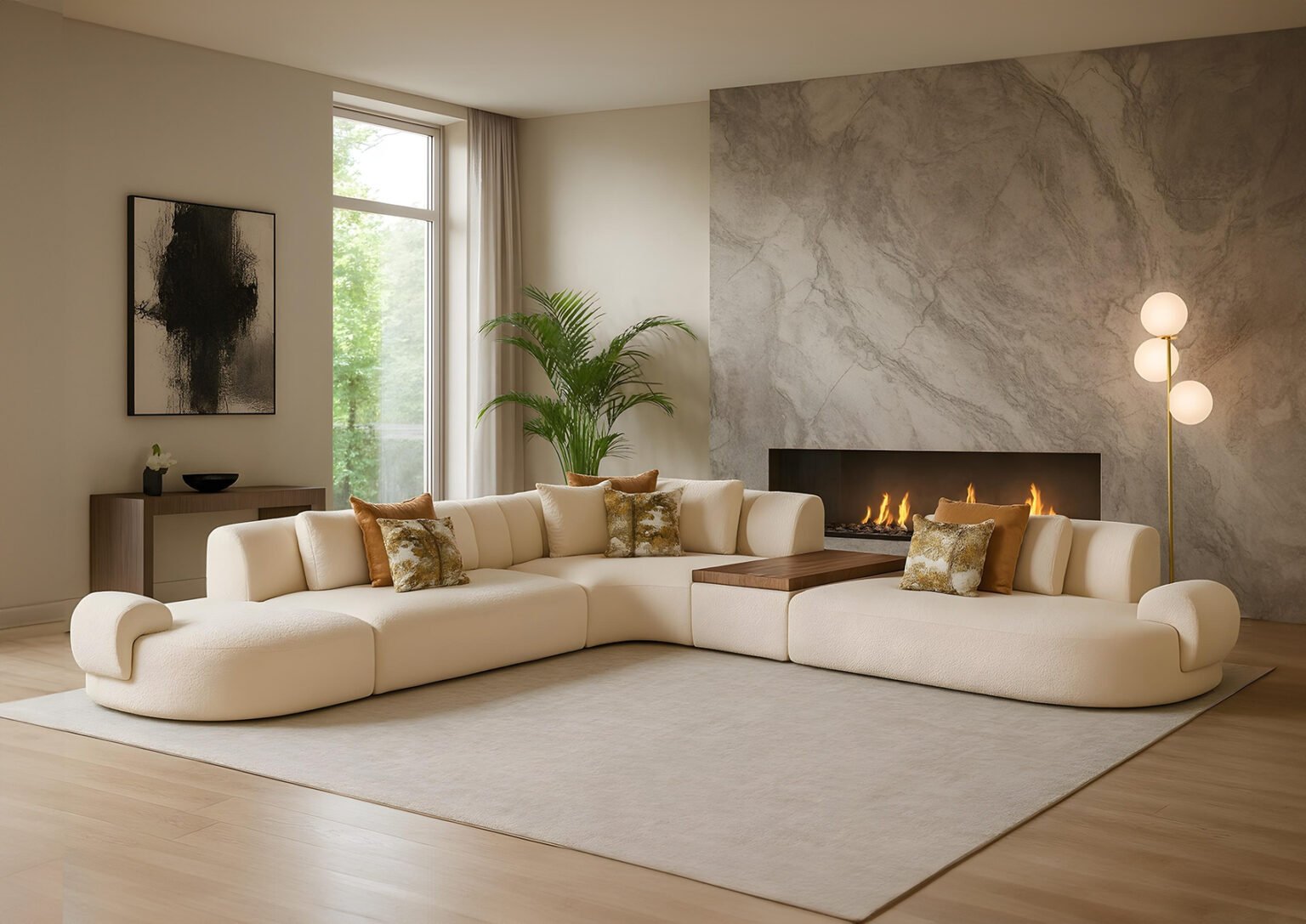 Élégant et contemporain, le canapé Lorenzo séduit par ses courbes douces, son tissu bouclette et son confort enveloppant. Une pièce design qui allie style et bien-être au quotidien.